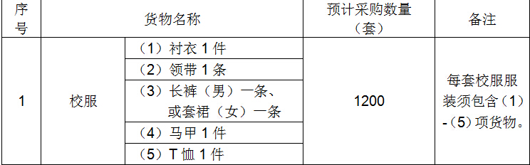 1.项目概况:本项目是betway西汉姆联官网校服采购项目,预计采购1200套服装,每套服装包含衬衣,马甲,长裤等5项货物;