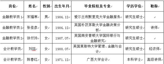 根据《关于印发< 广西壮族自治区事业单位公开招聘人员实施办法>的通知》(桂人社发[2011]155号)及《betway西汉姆联官网2015年公开招聘工作人员方案》的有关规定。我院2015年第二次社会公开招聘工作严格遵照公开招聘程序,向社会发布招聘公告,经考核、体检等程序,确定宋福常等4名海外硕士研究生,陈春红等1名副高级职称人员为拟录用人选。现拟对这5名同志进行公示,公示期为2015年12月8日至12月16日,具体情况如下: