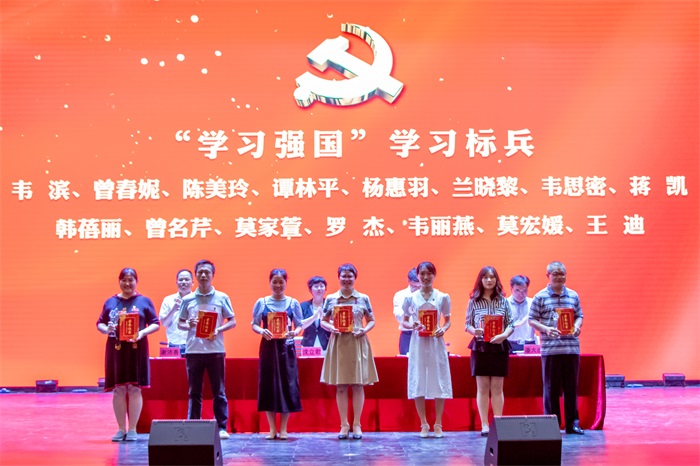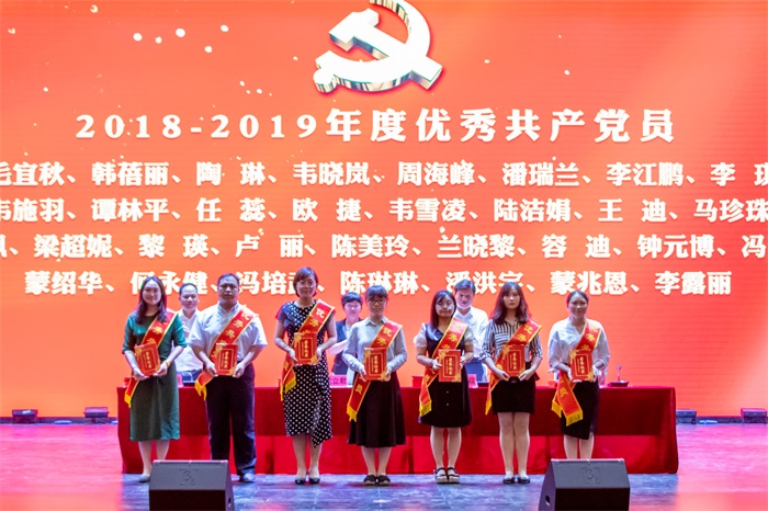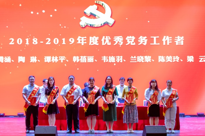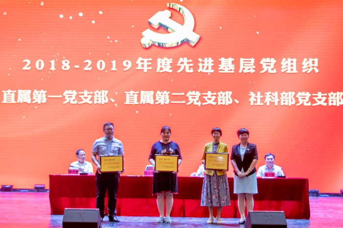 大会在庄严的国歌声中开幕。党委书记沈立君、党委副书记、纪委书记刘华政,副院长、常务副校长谢沛善,副院长、副校长潘大胜分别宣读了《2018-2019年度先进基层党组织、优秀共产党员和优秀党务工作者获奖名单》《“最美支部党员”获奖名单》《“学习强国”先进学习组织和学习标兵获奖名单》《“全国大学生同上一堂疫情防控思政大课”优秀观后感获奖名单》,并为受表彰的先进集体和个人颁发荣誉证书。