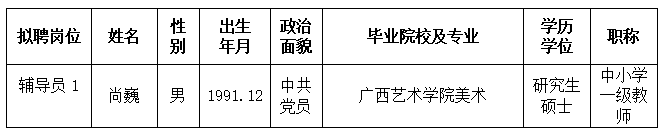根据《关于印发<广西壮族自治区事业单位公开招聘人员实施办法>的通知》(桂人社发〔2011〕155号)及《betway西汉姆联官网2024年第一批公开招聘非实名人员控制数工作人员公告》的有关规定,通过报名、资格审查、考试、考核、体检等程序,经研究决定,拟聘尚巍同志为西汉姆联工作人员。现将拟聘用人员名单予以公示,公示时间为2024年7月2日-2024年7月8日,如有异议,请于2024年7月8日下午5:00前以书面形式并署真实姓名反馈到学校纪委或人事处。联系地址:广西南宁市大学西路168号,邮政编码:530007,联系电话:0771—3481338,0771—3481779。