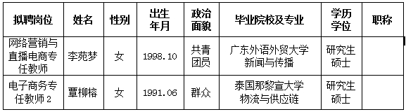 根据《关于印发<广西壮族自治区事业单位公开招聘人员实施办法>的通知》(桂人社发〔2011〕155号)及《betway西汉姆联官网2024年第一批公开招聘非实名人员控制数工作人员公告》的有关规定,通过报名、资格审查、考试、考核、体检等程序,经研究决定,拟聘李苑梦、覃柳榕同志为西汉姆联工作人员。现将拟聘用人员名单予以公示,公示时间为2024年9月25日-2024年10月1日,如有异议,请于2024年10月1日下午5:00前以书面形式并署真实姓名反馈到学校纪委或人事处。联系地址:广西南宁市大学西路168号,邮政编码:530007,联系电话:0771—3481338,0771—3481779。
