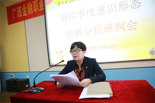 12月6日下午,学院在东校区电教一楼多媒体教室召开了第四季度意识形态形势分析研判会。学院党政领导及全体科级以上干部、党支部委员、团委委员、各系团总支书记参加了会议。