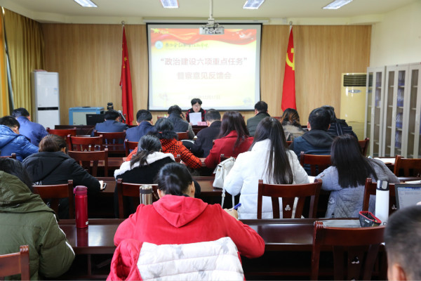 为全面加强政治建设,12月17日下午,我院在东校区六楼会议室召开“政治建设六项重点任务”督察意见反馈会,传达专项监督反馈意见。学校领导和各单位负责人出席会议。