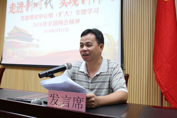5月11日下午,我院在东校区六楼会议室召开党委理论学习中心组(扩大)会议,专题学习2018年全国“两会”精神。中心组成员、各党支部委员、院团委委员以及各系部团总支书记/负责人参加会议。党委书记沈立君主持会议。