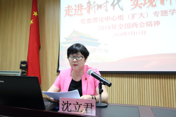 沈立君书记领学了习近平总书记在第十三届全国人民代表大会第一次会议上的讲话、2018年政府工作报告以及中华人民共和国宪法修正案、深化党和国家机构改革方案等重要内容。