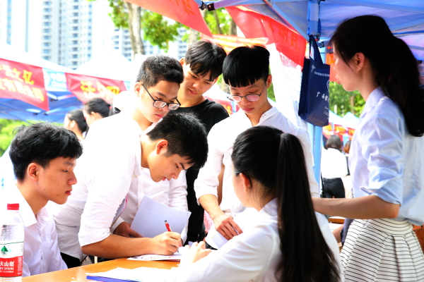 上午9时,参会学生身着正装有序进入会场,在各自感兴趣的企业展位前驻足咨询,了解具体的就业实习信息,以选择符合自身条件与要求的就业实习岗位。企业也为自身的宣传使出浑身解数,以同学们喜爱的元素制作出别出心裁的展览板,一些企业展位前很快便排起长队。