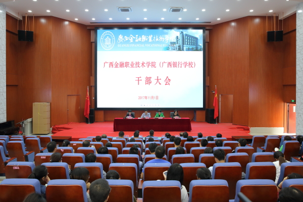 11月1日下午,我院(校)在西校区1号教学楼学术报告厅召开干部大会。自治区教育厅副厅长黄雄彪、自治区教育厅人事处处长覃艳娟,自治区教育厅人事处副处长赵成光出席会议,学院(校)领导班子及全体教职工参加会议。会议由自治区教育厅人事处处长覃艳娟主持。