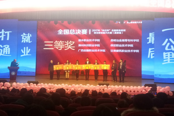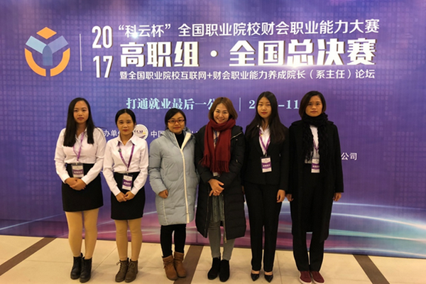 2017年“科云杯”全国职业院校财会职业能力大赛高职组全国总决赛于11月26日在山西财政税务专科学校举行。 经过全国300多所院校5万多学生的激烈角逐,最终有36所学校的参赛队伍进入了决赛。 我院会计系四名学生在指导老师老师的带领下,荣获团体三等奖,让我们祝贺她们取得的好成绩。