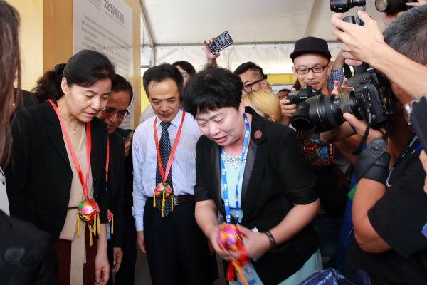 展会上,教育部部长助理郑富芝、广西壮族自治区人民政府副主席丁向群及各国嘉宾一行观看了我院传统绣球制作展示,并被浓郁的壮乡文化深深吸引。他们饶有兴致的观看了制作过程,深入了解了绣球文化背景。身穿壮族传统服饰的学生们纷纷为嘉宾们赠送了亲手制作的绣球,也将美好的祝福赠予每位嘉宾。