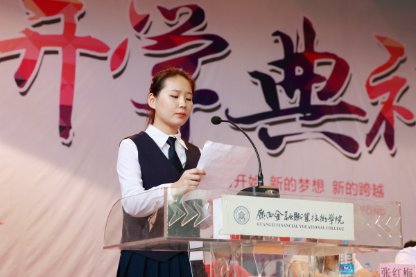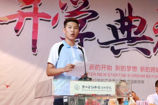 老生代表金融1602班王静在发言中与全体新生共同分享了她在学校一年来的学习、生活情况,为新同学即将开始的校园生活提供了宝贵的经验。新生代表高后1601班王嘉诚在发言中表示,对面新的机遇和挑战,他讲和所有新同学一起,共同奋斗,努力学习,描绘出自己青春靓丽的人生。