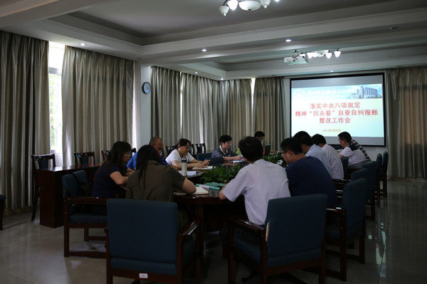 为深入贯彻落实党的十八届六中全会、十八届中央纪委七次全会和自治区第十一次党代会精神,抓好中央巡视“回头看”反馈意见整改。5月25日,我院在东校区办公楼五楼会议室召开落实中央八项规定精神“回头看”自查自纠报账整改工作会。会议由沈立君院长主持,党政办公室、财务处、学生工作与招生就业处、教务科研处、后勤管理与保卫处、继续教育部、信息管理中心以及系部主要负责人参加会议。