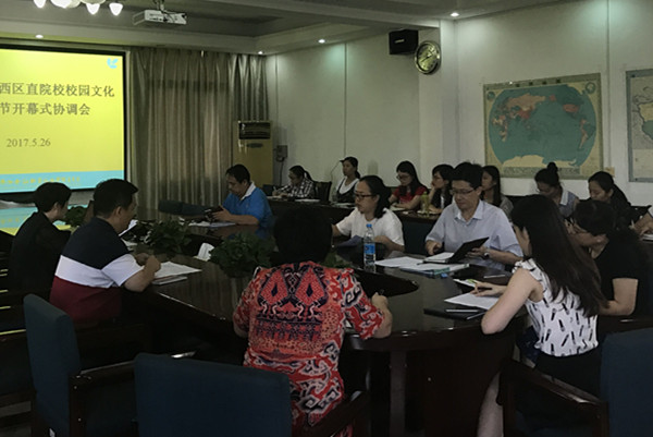 第六届广西区直院校校园文化艺术节开幕式即将在我院举办。为做好相关工作,以良好的精神面貌办好开幕式,5月26日下午,我院在东校区五楼会议室就开幕式的各项工作召开协调会,院长沈立君出席会议。院团委、党政办公室、教务科研处、后勤管理与保卫处、信息管理中心、财务处等相关职能部门负责人,各系团总支负责人,院团委委员参加了会议。会议由团委书记、学生工作与招生就业处副处长周海峰主持。