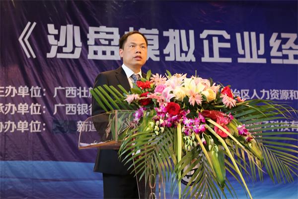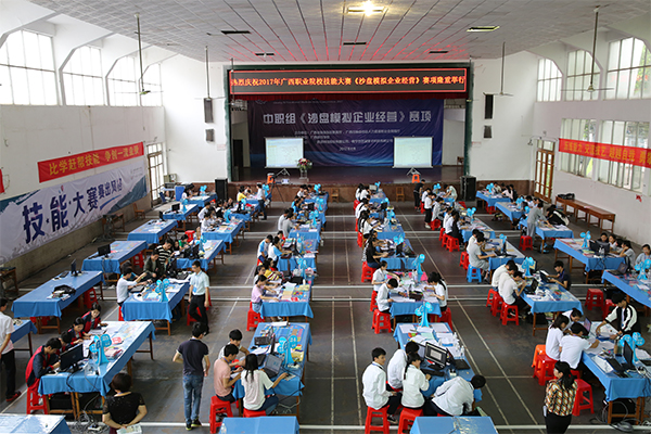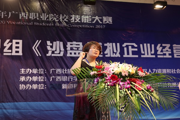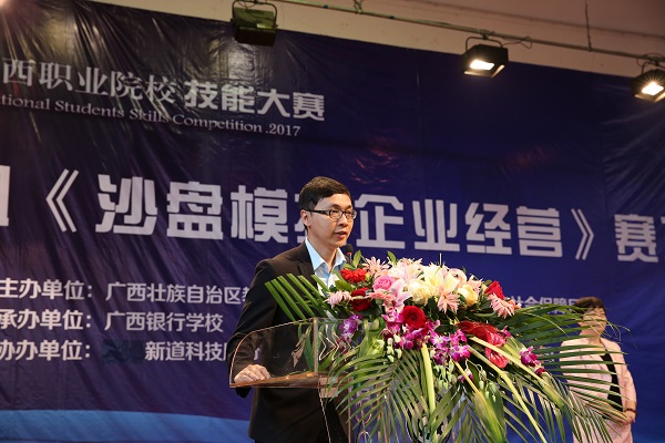 4月20日上午,由自治区教育厅、人社厅共同主办,西汉姆联承办的2017年广西职业院校技能大赛中职组《沙盘模拟企业经营》比赛在西汉姆联隆重举行。赛项裁判长范伟,新道科技股份有限公司技术总监黄宇,学校校长沈立君,副校长谢沛善出席了开幕式。开幕式由谢沛善副校长主持。