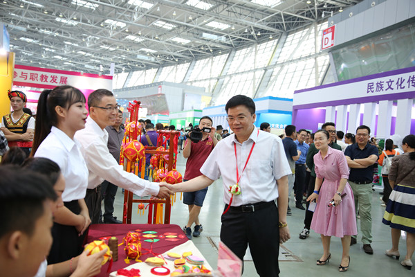 自治区教育厅副厅长黄雄彪参观我院壮族绣球制作展示