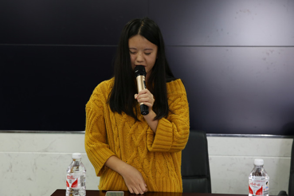 接着,新生代表本会1702班王日敏、本金1702班莫振规两位同学做了表态发言,老生代表本会1602班苏金慧和本金1601班黄婷两位同学做了专本衔接学习经验交流。