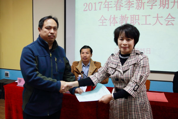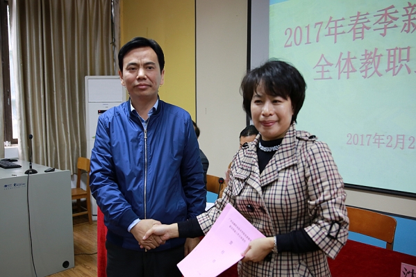 2月25日上午,我院(校)在电一召开2017年春季学期开学全体教职工大会。学院党委书记覃艳娟,院长沈立君,党委副书记、纪委书记刘华政,副院长谢沛善,院长助理罗坚及全体教职员工参加会议。会议由党委副书记刘华政主持。