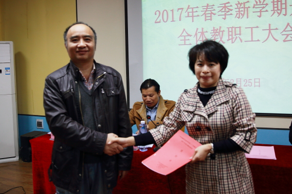 会议首先由刘华政副书记介绍今年新入职的教职员工。随后,沈立君院长分析了当前我区教育形式,并结合我院实际部署学院2017年行政工作。她围绕新校区建设、教育教学改革、专业建设、学生管理、招生就业、协同育人建设、信息化建设、国际交流、精神文明建设、后勤管理等10个方面对betway西汉姆联官网和betway西汉姆联官网新一年工作提出要求 。沈院长指出,全体教职员工要主动出击、压实责任、勇于担当,以敢想敢做的精神攻坚克难,确保各项工作落实到实处;各部门要科学谋划,明确责任,狠抓落实。
