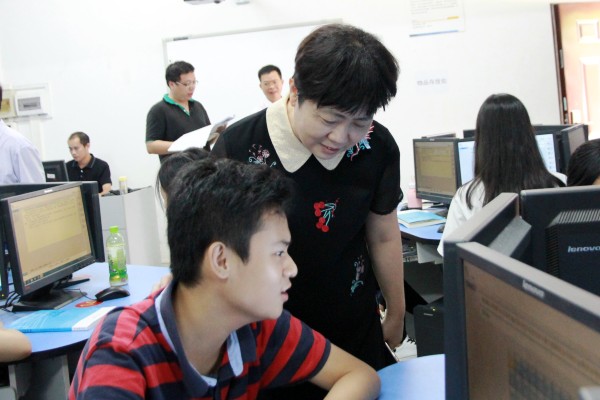 沈校长检查学生五笔录入技术