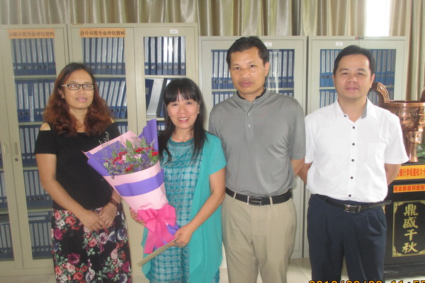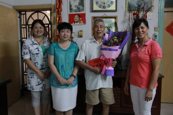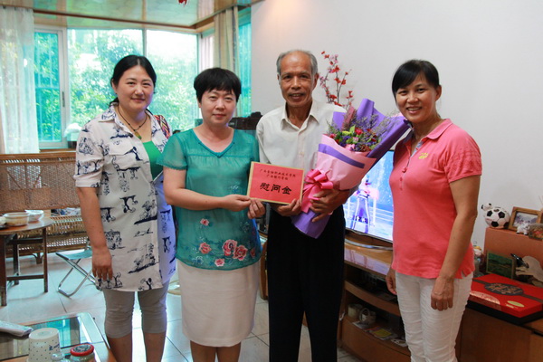 “黑发积霜织日月,粉笔无言写春秋”,我院的退休教师和在职教师都为我院的发展奉献了自己的青春,我们不会忘记他们的付出;“春播桃李三千圃,秋来硕果满神州”,我院的退休教师和在职教师为我院培养了无数人才,我们不会忘记他们的成就;“采得百花成蜜后,为谁辛苦为谁甜”,我院退休教师和在职教师为我院发展鞠躬尽瘁,我们不会忘记他们的奉献。值第32个教师节来临之际, 9月 8 日全天、9月9日上午,学院领导率相关职能部门负责人分三组分别看望慰问了彭庆堂、黄定秋、徐静娥、陈日昌、孙重阳五位退休教师及韦柳玲、赵玉梅、陆振萍、徐枫、黄姬五位在职教师,给他们献上了鲜花,并向他们表达了节日的问候和良好祝愿。