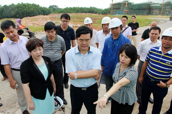 满昌学副书记(中)听取新校区规划介绍