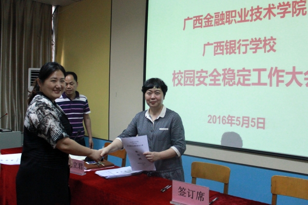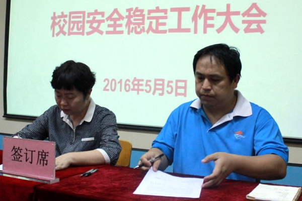 随后,沈立君院长与我院各部门负责人共同签署《2016年安全稳定工作责任书》,目的是确保校园安全工作层层落实,责任到人。