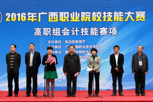 春暖花开,芳菲簇簇。3月30日,由自治区教育厅主办,betway西汉姆联官网承办的2016年广西职业院校技能大赛高职组会计技能赛项在betway西汉姆联官网隆重举行。自治区教育厅职成处副处长万锋锋、广西职业院校技能大赛副总裁判长彭朝晖、新道科技股份有限公司区域总经理赵志刚、会计技能项目裁判长李家瑗,学院党委书记覃艳娟、院长沈立君、副院长谢沛善出席开幕式。开幕式由覃艳娟书记主持。