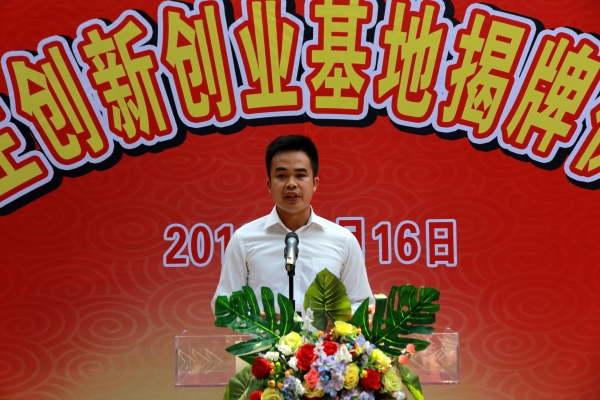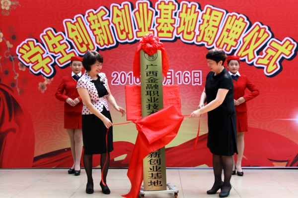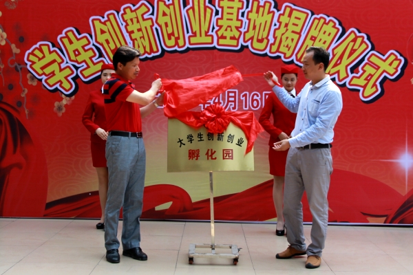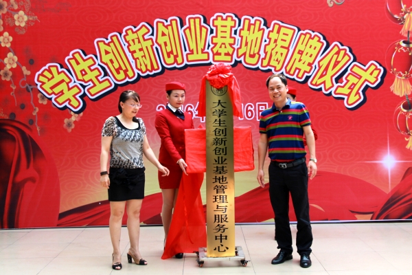 根据《教育部关于做好2016届全国普通高等学校毕业生就业创业工作的通知》要求,学院积极响应号召,参与成立了“广西高校创新创业教育联盟”,成为首批成员单位。4月16日早上,我院隆重举行大学生创新创业基地揭牌仪式。广西大学生创业就业研究会会长范俭,韵达快递大学城总经理潘立连,南宁玲诚商务有限公司总经理莫海玲,广西大学生创业就业研究会副会长、广西南宁锦轩人力资源管理有限公司总经理董金明,学院领导以及各处室负责人、教师代表出席揭牌仪式。仪式由学院党委副书记刘华政主持。