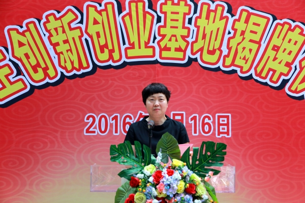 覃艳娟书记(左)、沈立君院长(右)为创新创业基地揭牌揭牌
