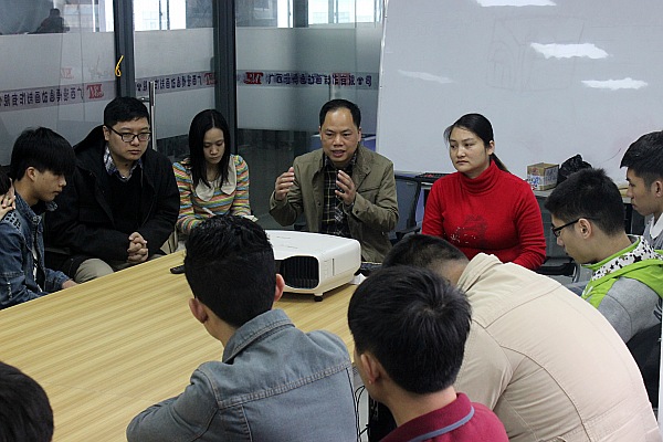 3月2日上午,副院长谢沛善、信息技术系主任唐雪涛和专业骨干教师仇雅带领2014级数字媒体技术应用专业学生到广西漫博通动画制作有限公司进行了别开生面的新学期第一节课,得到了广西漫博通公司副总经理李玲的热情接待。本次实践教学是我院信息技术系在校企合作课程改革中的一项重大突破,目的是将课堂与企业实践相融合,通过校企深度合作践行现代学徒制教学模式。