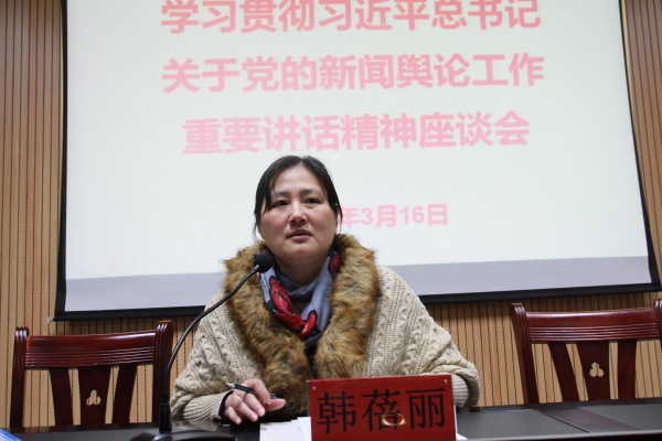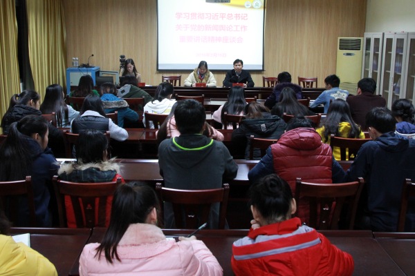 为学习贯彻习近平总书记关于党的新闻舆论工作重要讲话精神,让我院新闻工作者深入了解习近平总书记对于新闻行业的重视和要求,认识新闻媒体的重要性,3月16号晚,我院召开新闻工作者学习贯彻习近平总书记关于党的新闻舆论工作重要讲话精神座谈会。学院党委副书记、纪委书记刘华政,党政办公室副主任韩蓓丽,相关教师、通讯员代表及新闻媒体中心全体成员参加本次会议。党政办公室宣传科科长陶琳主持会议。
