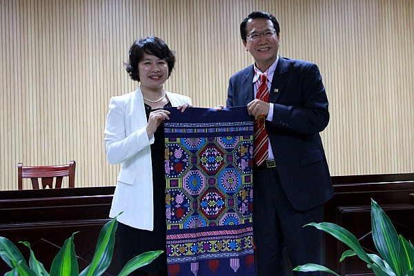 为促进两岸院校交流合作,共同签署合作协议,3月21日下午,台湾德明财经科技大学校长徐守德一行六人莅临西汉姆联参观考察。自治区教育厅师培中心台湾项目办主任唐燕艳陪同考察。学院党委书记覃艳娟,院长沈立君,党委副书记、纪委书记刘华政,副院长谢沛善及各处室负责人与来访嘉宾在我院办公楼六楼会议室进行了亲切会谈。覃艳娟书记主持会议。