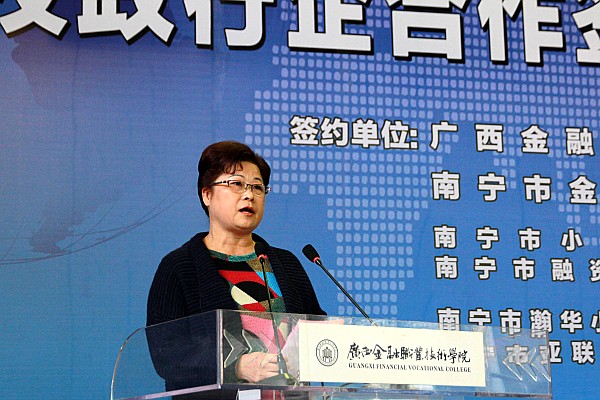 南宁市小额贷款行业协会秘书长韦丽萍和南宁市瀚华小额贷款有限公司副总经理吴一苹分别代表行业和企业致辞。表示将会继续加大和我院合作交流的工作力度,在合作领域、合作深度、合作实效上取得新突破。