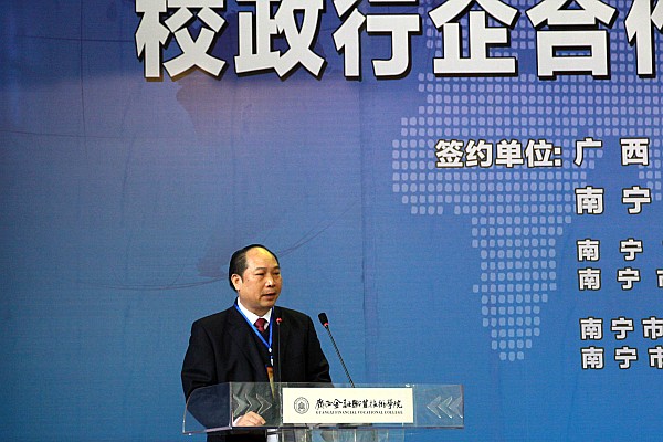 南宁市金融办党组书记、主任苏道勇在讲话中对校政行企合作提出了两点建议。一是建立合作机制,切实推动合作项目落地。二是深化开展合作,共谋区域发展。苏主任的建议对于后续落实本次会议精神,付诸协议商定的各项任务,实现既定的工作目标,具有重要的指导意义。