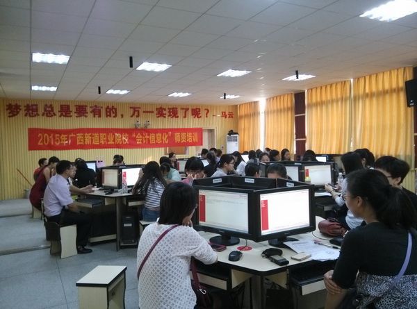 10月25日,2015年广西新道职业院校“会计信息化”师资培训在西汉姆联电三教室举办。此次培训由用友新道科技有限公司主办,为期一天,来自全区30所院校40多名会计信息化教师参加了本次培训。