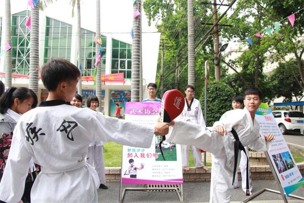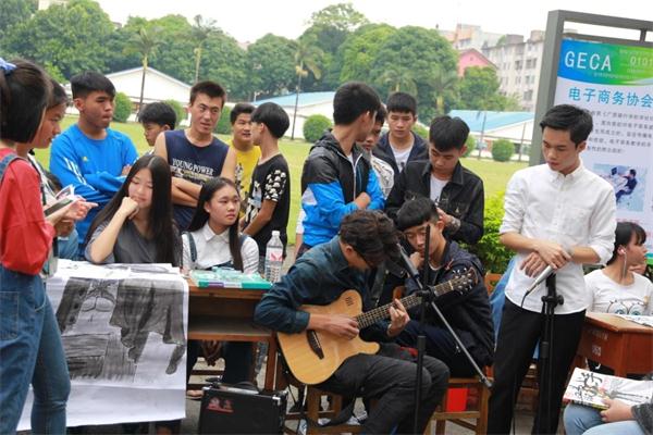 招新现场,各社团精心布置了自己的招新摊点,桌子、凳子、海报、音响等一应俱全,各社团大显身手,各自用独特的方式对社团进行了宣传。只见武术协会的成员身着武术服,向学弟学妹们彰显他们武术“拼搏忍耐奋斗”的顽强精神;舞蹈社的成员们,更是现场舞动他们灵活的身姿,大显舞蹈风采;音乐社的成员们高调带来吉他弹唱,势要先“声”夺人……