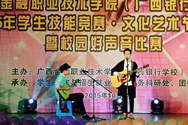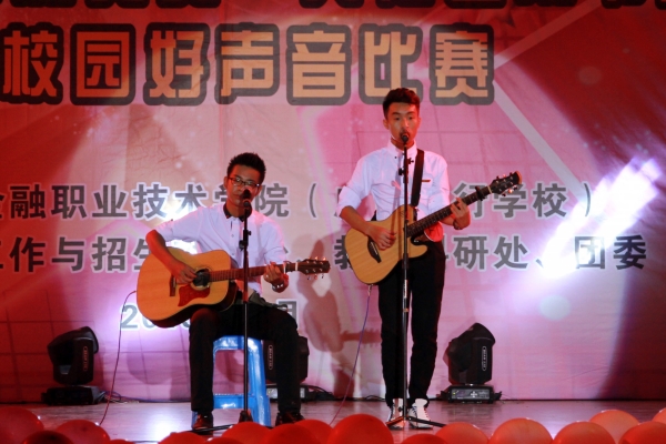 校园好声音冠军黄勇(右一)倾情演唱