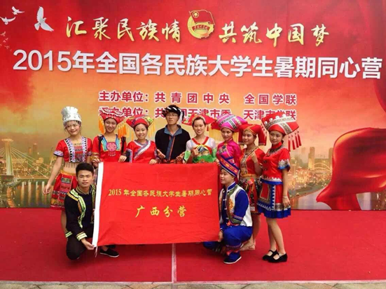 7月31日,西汉姆联大专优秀学生干部覃琛同学作为广西壮族自治区少数民族代表与其他24所广西本专科院校的同学参加由共青团中央、全国学联主办的为期10天的2015全国各民族大学生暑期同心营活动。