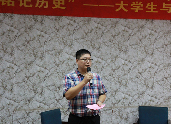 作为寻找、慰问和关爱抗战老兵的志愿者,郑加莉女士则通过自身的经历和感受,与大家分享了抗战老兵们的抗战故事,并号召青年学生踊跃加入到关爱抗战老兵志愿者队伍中来。