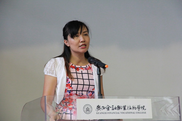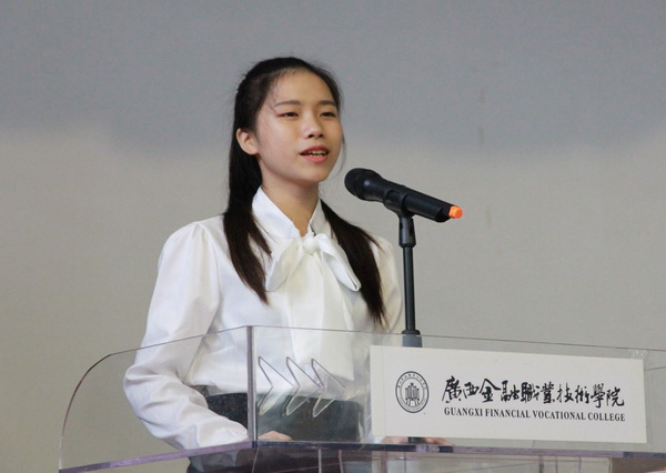 开学典礼在庄严的国歌声中拉开序幕。金融系教师代表秦艳老师代表全体教职员工,热烈欢迎新同学的到来。同时,也从专业的角度,表达对同学们的殷切期望,给同学们提出了专业成长方面宝贵的意见。2014级会计专业代表黄诗琳汇报了自己在校一年来的学习、生活情况,与新生分享了自己作为学姐和过来人的宝贵心得、体会。新生代表金融管理与实务专业吴冠贤代表全体新生承诺,在金院的日子里,将努力做到勤奋学习、诚实守信,文明礼貌,锐意进取,苦练技能,早日成为一名德才兼备的大学生。