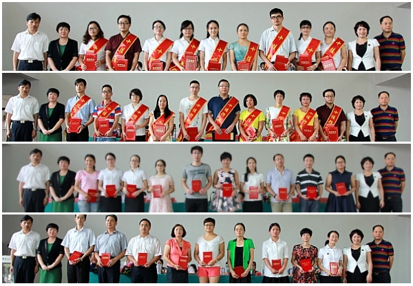 十佳教师、十佳服务之星、优秀班主任、先进个人上台领奖