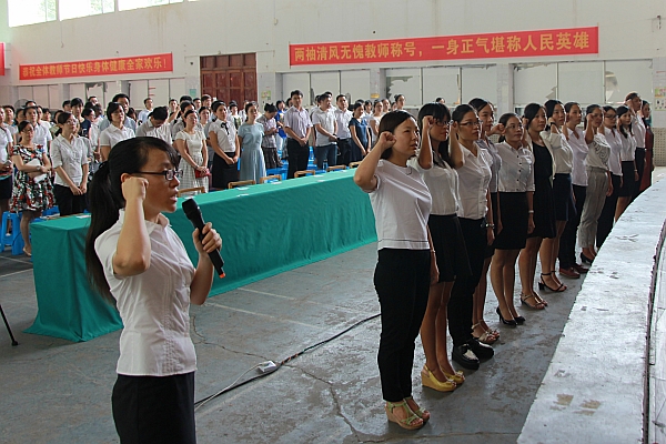 同时,学院(校)继续开展“以老带新”的青蓝工程,举行新老班主任、新老教师结对子签约仪式,帮助新教师尽快成长。在金融系欧捷老师的带领下,全体新录聘员工进行了入职宣誓。