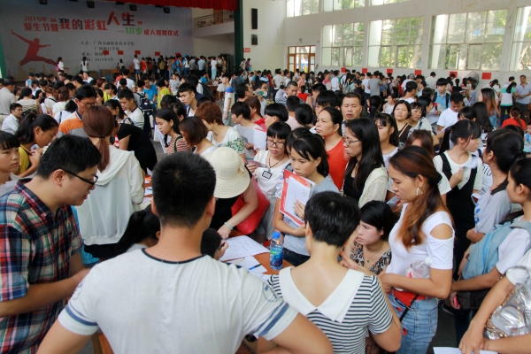 报到现场,学校采取“一站式”服务,简化报到流程;工作人员热情洋溢、服务周到、有问必答;南宁市各汽车站、火车站接站员们一趟又一趟不厌其烦的运送新生,废寝忘食;志愿者们则积极地帮助学生及家长搬运携带行李,热情将新生送至宿舍。