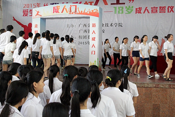 为贯彻落实“我的中国梦”主题教育实践活动,激发学生爱国主义精神,强化学生成人意识和责任意识,5月26日下午,以“尊师爱生,成人之美”为主题的2015年爱生节暨“我的彩虹人生”——18岁成人宣誓仪式在西汉姆联大礼堂内隆重举行。党委副书记、纪委书记陈明健,副校长卢华东,各科室领导以及近六百名年满十八周岁的学生参加了宣誓仪式。仪式由办公室主任韩蓓丽主持。