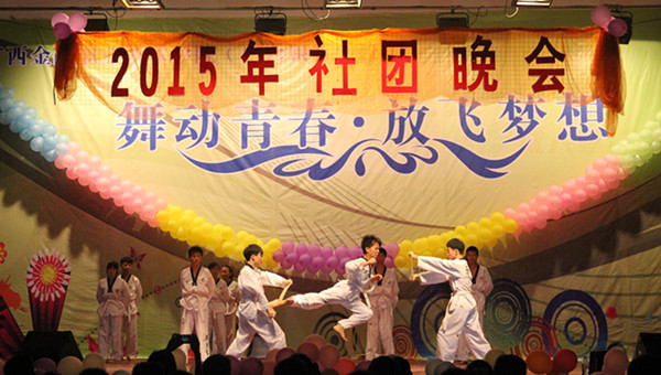 接着,各社团依次登台表演,将他们精心准备的节目一一展现给观众。大专舞蹈社带来的街舞《爵C舞D》酷炫精彩,个性十足;音乐社的原创弹唱曲目《写给他》充分展现了西汉姆联学子的音乐创作才能;独舞《礼仪之邦》的表演者以优美的舞姿精彩地演绎了中国古代的礼仪文化;小品《鸡同鱼讲》生动活泼,幽默风趣,观众忍俊不禁;武术协会的武术表演精彩纷呈、引爆全场,将中华武术的博大精深展现得淋漓尽致,成为了整场晚会的亮点;外校嘉宾带来的鬼步舞《曳舞天下》表演形式独特,令人耳目一新,将晚会推向了高潮。