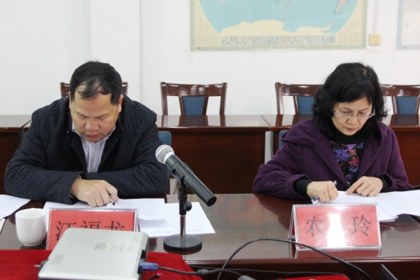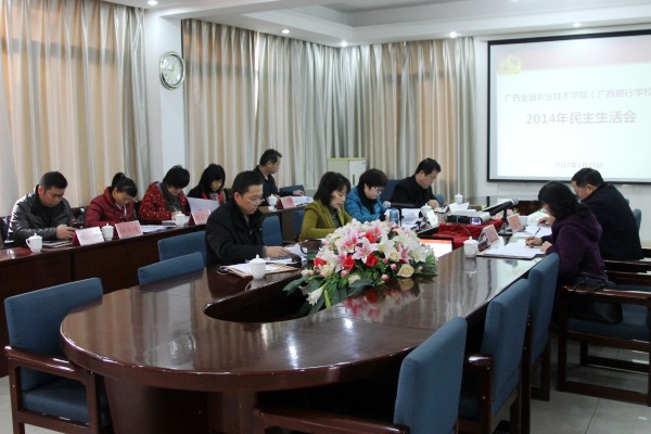 1月15日上午,我院(校)在五楼会议室召开了2014年度领导干部民主生活会。自治区高校工委、教育厅机关党委专职副书记、机关工会主席江福龙,纪检监察室副处级纪检监察员、机关党委纪委书记农桂玲参加了会议。会议由学院党委书记覃艳娟主持。