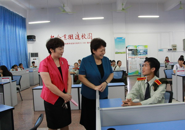 在学院领导的陪同下,李康副主席一行饶有兴致地逐一参观了我院实训基地。在听取讲解员介绍并详细询问了各实训室的运作情况后,李康副主席对我院实训基地的建设给予了高度的评价和赞扬,希望学院今后继续加强内涵建设,与社会接轨,与市场接轨,提高学生实践能力和动手操作能力。同时寄语我院成为广西金融人才输送中心,为广西金融发展培养更多高水准、高素质的优秀人才。
