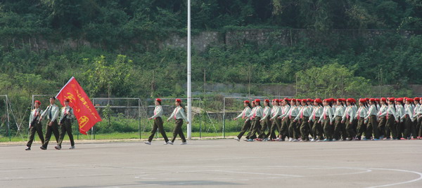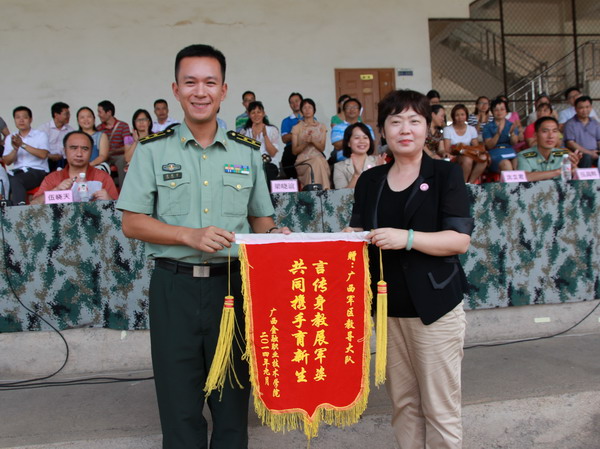 最后,学院领导向军训部队赠送锦旗。至此,为期半个月的2014级新生军训圆满结束。通过艰苦的训练,同学们既锻炼了自己的意志,又增强了国防意识,并向学院交上了入学后第一份优秀的答卷。