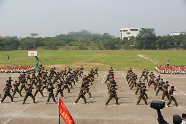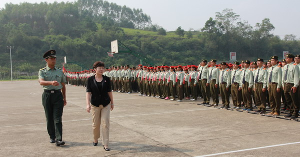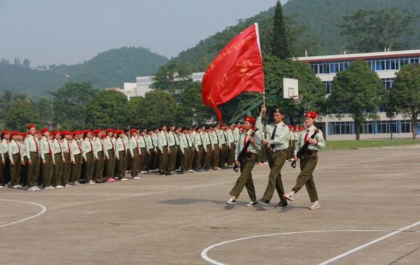 军训部队领导、广西军区教导大队梁晓谊副大队长也作了重要讲话。他充分肯定了同学们在军训过程中的优异表现,对圆满完成军训任务的全体新生表示热烈的祝贺,并对2014级新生提出了殷切希望。他希望全体同学今后在思想上、行动上能够继续保持一致,继续发扬吃苦耐劳精神,树立好国防意识,努力把自己打造成为一个德才兼备的优秀人才。