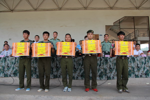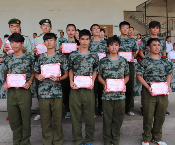 学院党委书记覃艳娟同志宣读军训队列训练、军歌比赛优胜连队名单,党委副书记陈明健同志宣读了军训先进个人和内务先进个人名单。接着,与会领导为获得优胜连队和先进个人颁发了荣誉证书。