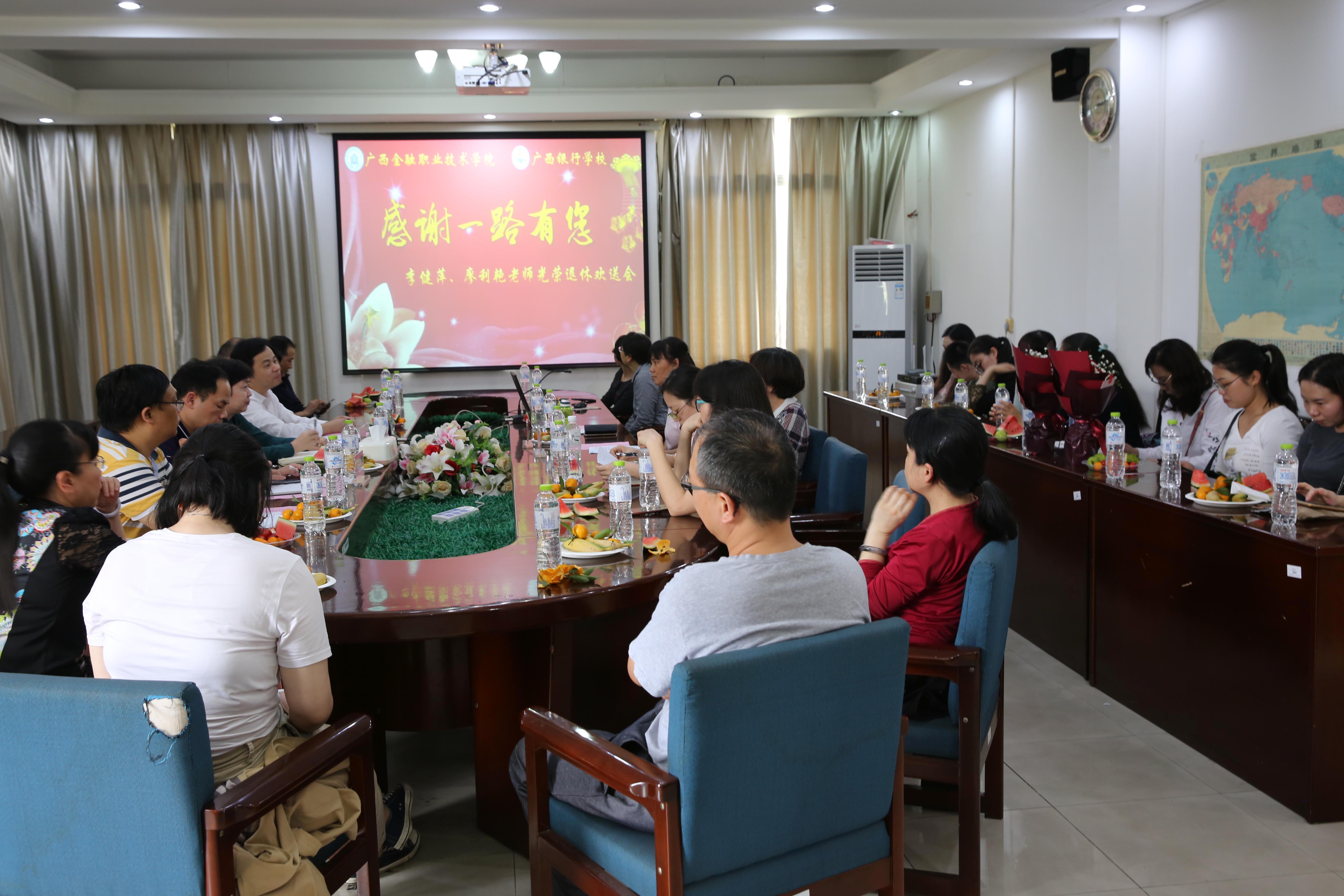沈立君书记对两位退休教师多年来为学校做出的贡献表示充分的肯定,同时对两位教师退休后的生活给予美好的祝愿。她指出,离退休教师是党和国家的宝贵财富,是学校发展的重要力量,是学校奋发向上的精神支柱。学校目前处于发展的关键时期,面临的困难和挑战还很多,仍需要老同志一如既往地关心与支持,发挥余热为学校发展建言献策,共同努力把学校建设成为广西乃至全国一流的职业院校。
